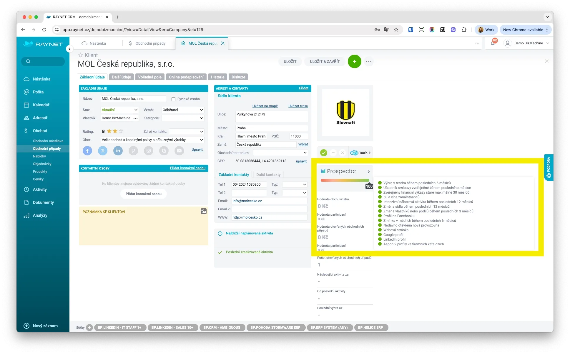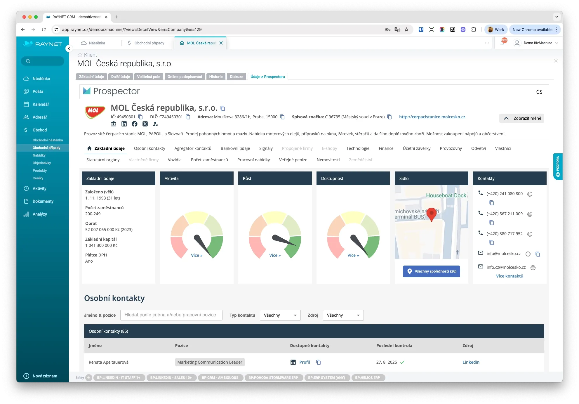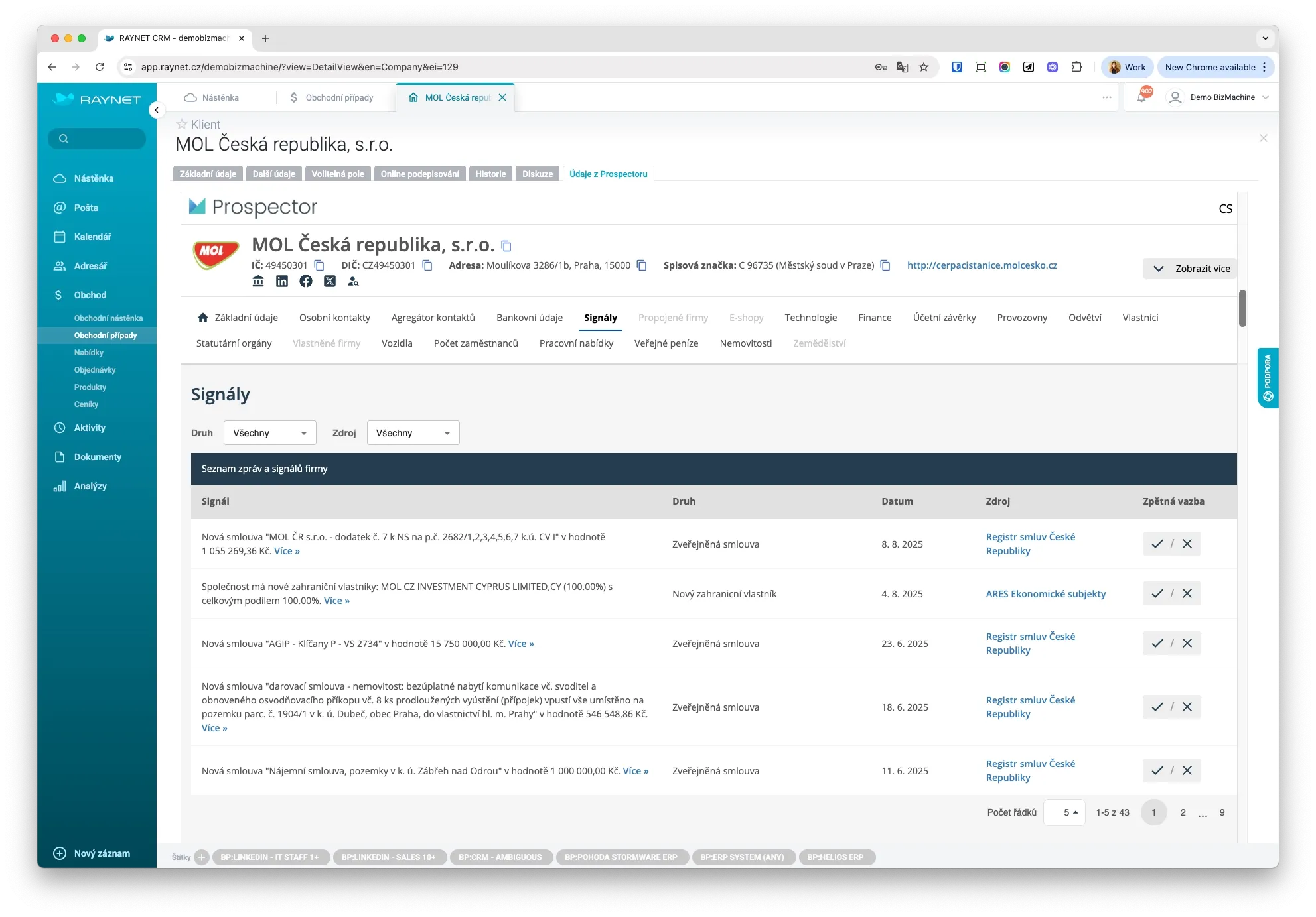 BizMachine Prospector je online nástroj na získavanie B2B dát, vďaka ktorému máte prehľad o firmách z Česka, Slovenska, Poľska, Nemecka a Maďarska. Umožňuje cielené vyhľadávanie podľa viac ako 70 kritérií - od odboru, veľkosti, technológií až po udalosti ako zmeny vo vedení či nové zákazky, ktoré signalizujú vhodný okamih na kontakt.