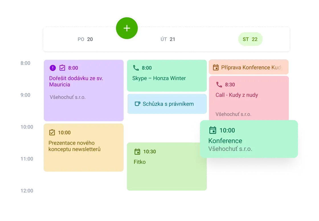 Plánujete tímovú poradu alebo schôdzku u klienta? Na jedno kliknutie vidíte v kalendári, kto má čo naplánované.