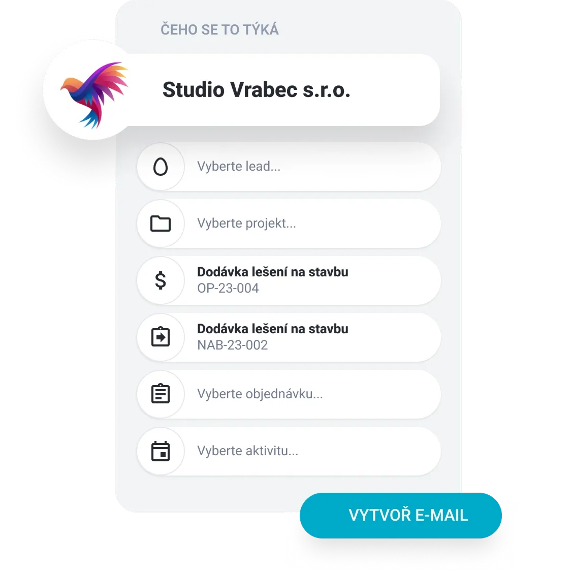 E-maily automaticky prepojíte so záznamami v CRM. Keď si potom rozkliknete zákazníka, máte pred očami všetko, čo ste spolu kedy riešili. Vďaka tomu ste rýchlo v obraze, aj keď ste s klientom v minulosti nekomunikovali vy osobne.