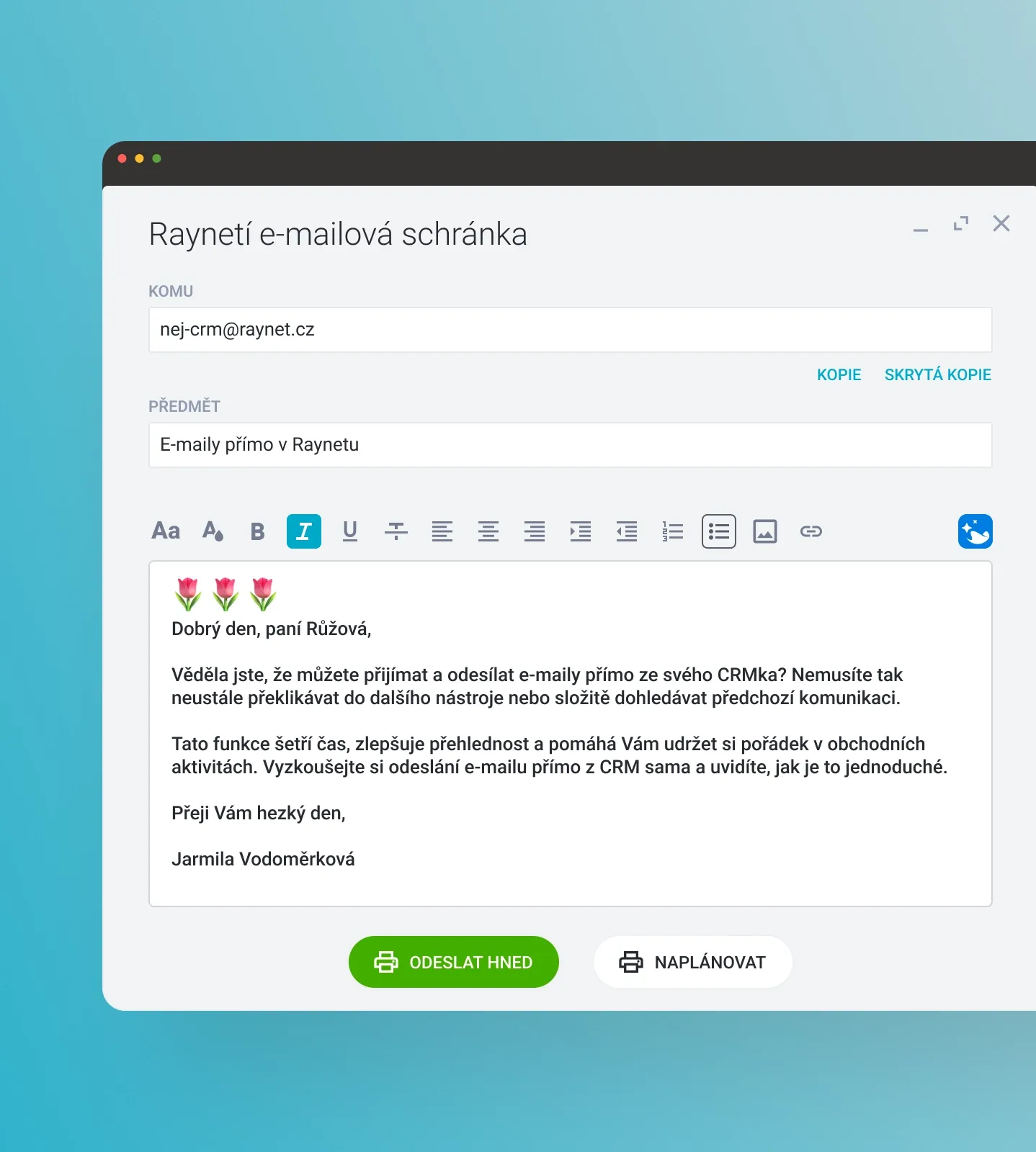 Predstavte si e-mailovú schránku, kde sú všetky správy prepojené s údajmi o klientoch z CRM. Presne takto funguje Pošta v Raynete.